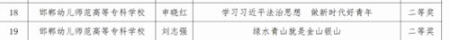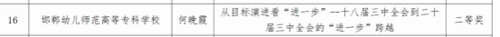 为深入学习贯彻习近平新时代中国特色社会主义思想,全面贯彻落实党的二十大精神,持续推进习近平新时代中国特色社会主义思想进教材、进课堂、进头脑,邯郸市教育局组织开展了2025年中小学习近平新时代中国特色社会主义思想“三进”优质课、“三进”视频精品课评选活动。马克思主义学院刘伯洋、曹勃昊荣获一等奖,何晚霞、申晓红、刘志强、栗志超、秦超杰分别荣获“三进”视频精品课和“三进”优质课二等奖和三等奖。